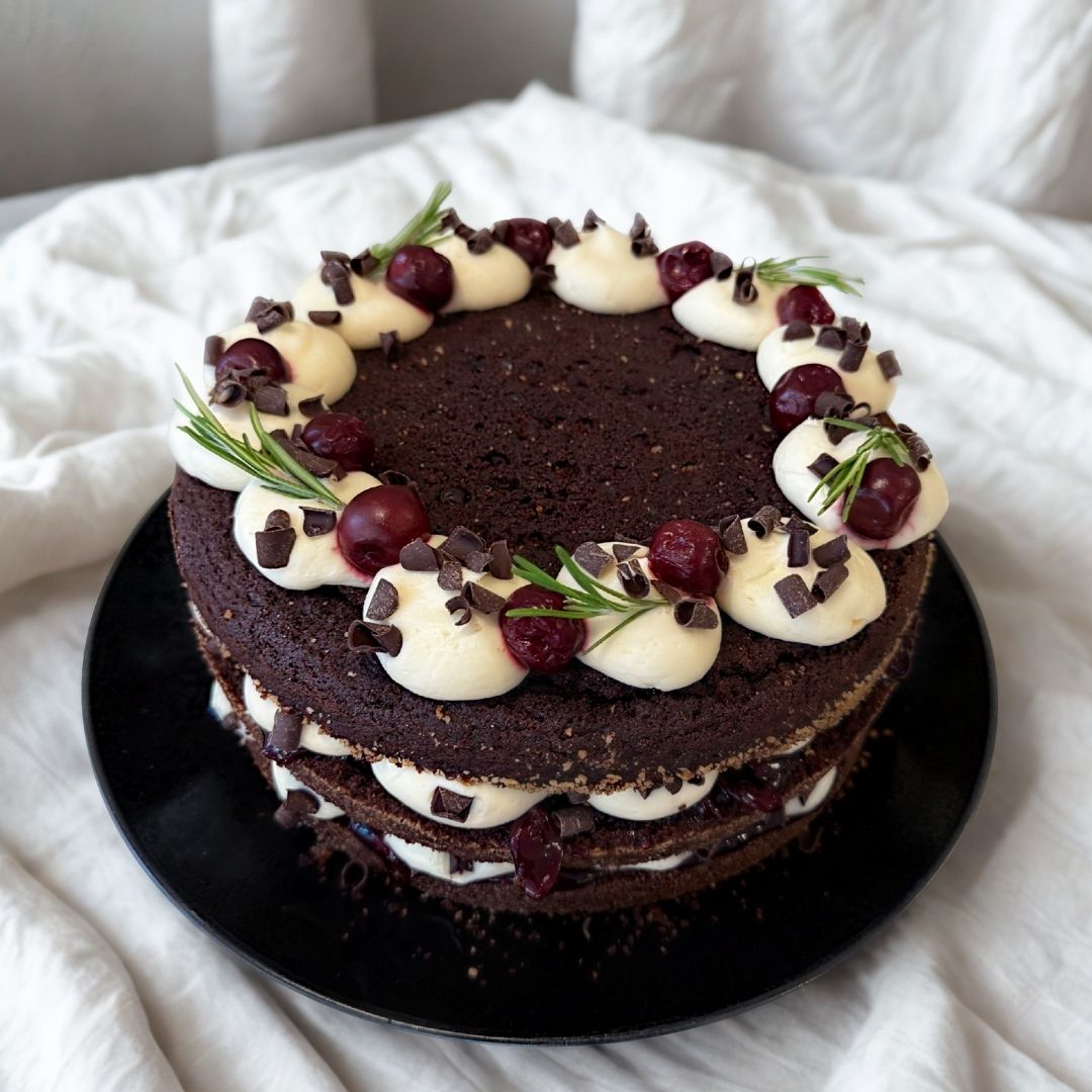 Laktoositon kirsikka-suklaakakku kymmenelle henkilölle.
