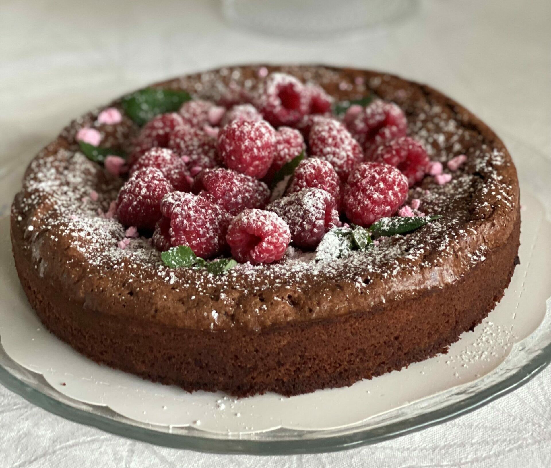 Mutakakku vadelmilla • Kladdkaka med hallon